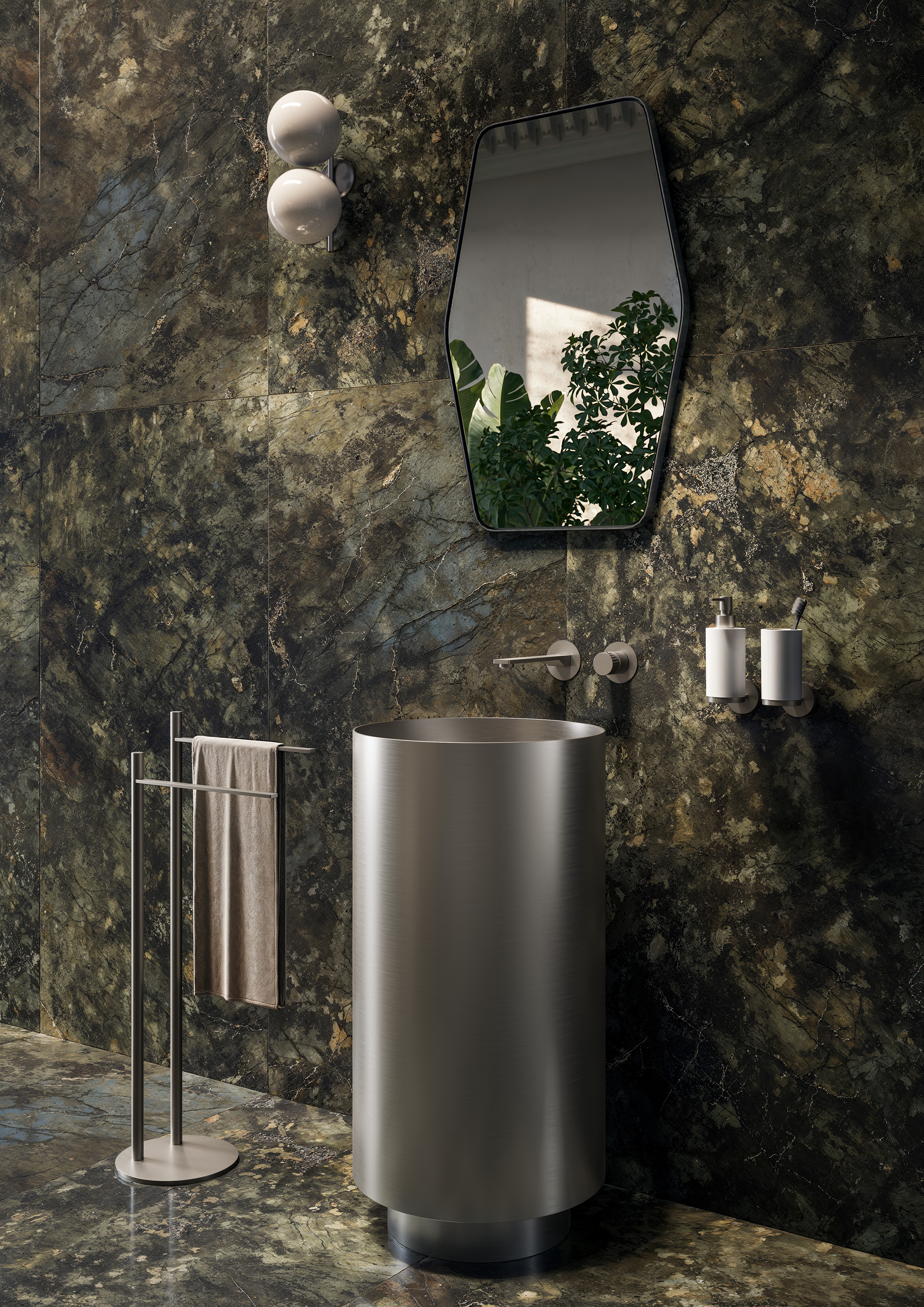 Steel Line is the new bathroom collection by Newform—a stainless steel line that surprises with its visual lightness and captivates with its formal coherence.