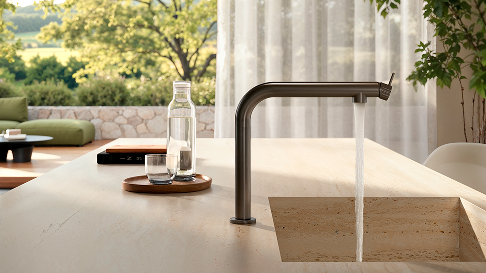 Within this journey, Alkimia expands its design language. New configurations have been created for those seeking maximum visual clarity. The remote control, separate from the mixer, lightens the aesthetic of the worktop while maintaining the full functionality that defines the series. This is complemented by the traditional mixer version, which preserves the collection’s signature style, making Alkimia even more versatile and universally appealing.