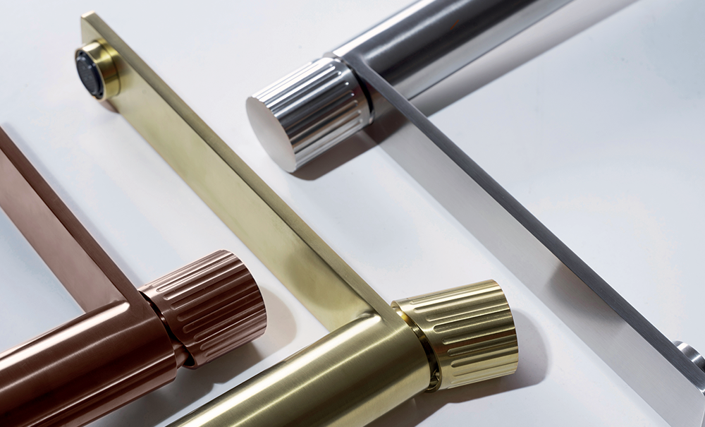Steel Line combines precision and refinement: the handle, with its fine and regular embossed pattern, creates rhythm and visual clarity — a perfect synthesis of apparent simplicity and technical sophistication. Balanced proportions, calibrated volumes, and PVD finishes — Gun Metal, Pale Gold, and Copper Bronze — in addition to stainless steel 316, complete an elegant and sophisticated design.